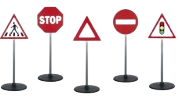 Regulatory signs, warning signs, used to convey rules, hazards, and directions to road users